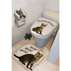 人気のキジトラ猫をプリントした3点セット。トイレが可愛い癒し空間に早変わり!トイレマット、フタカバー、ペーパーホルダー。