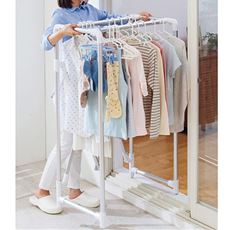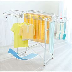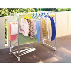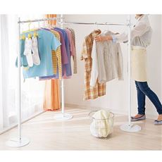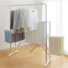 上下左右の伸縮が無段階でできるのがポイント。長め丈のワンピースも裾を気にすることなく干せ、シーツや布団もおまかせです。