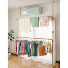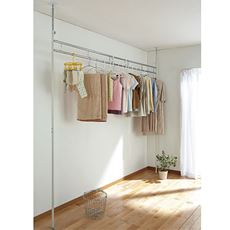 Wバーでガッシリ!使いやすさもアップ♪突っ張り式で安定感もあります。窓辺にちょい掛け!雨の日のお洗濯も安心♪