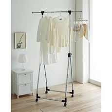 干す物やスペースに応じて高さも幅も調節可能◎コンパクトなキャスター付きで移動しやすく、部屋のすみにも手軽に置けます♪