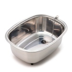 ステンレスで有名な新潟県燕三条産の「脚付きステンレス洗い桶(中栓付き)」。洗い桶の下に高さ約2.3cmのゴム脚が付いているので、桶の下に溜まりがちなゴミが流れやすいのが特長です。