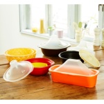 本品に食材を入れてタジン形状の調理蓋をかぶせたら、レンジでチンするだけ。蒸す・煮る・炊く・茹でる・保存がこなせる、電子レンジ専用調理器具です。