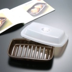 ご家庭の電子レンジをつかって料理を早く美味しく。<レンジで簡単調理プレート>のご紹介です。底面に施された電磁波に反応する特殊な発熱体がポイント。