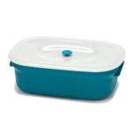 姉妹品の「バキュームセットQ」のバキューマーを使って、あっという間に内部を真空状態にできる便利な真空調理保存容器「Qコンテナー長角型3個セット」をご紹介。