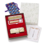縁起がよいとされる書体“ハッポウテンショウタイ”を採用した、高級感あふれる手仕上げの印鑑セット。印鑑はすべて厚生労働大臣が認める「1級印章彫刻技能士」である中村皇雅氏の工房で彫り上げています。