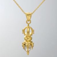 仏様の持つ法具の一つで、煩悩を打ち砕く際に使われるとされる五鈷杵。その五鈷杵を元にデザインし、幸運、浄化、潜在能力の象徴といわれる水晶をセットしたペンダントです。