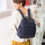 可愛らしさとスポーティーさを併せ持ち、使いやすさにもこだわったリュックです。丸いキルティングとダークカラーの持ち手、ロゴで引き締めたオシャレなデザイン。