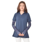 紫外線遮蔽率99%以上で、紫外線をしっかりガードするUVブロックパーカーです。動きやすさと着心地にこだわった、ストレッチ性のあるスウェット素材を使用。