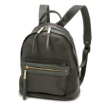 ころんとした丸みのあるフォルムが目を引く、フェミニンなリュックサックです。ナイロン生地にスムースレザーをあしらい、きれいめスタイルにもマッチする仕上りに。