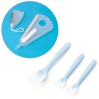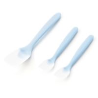 先端が柔かいのでカップの底面もすくいやすい、ヨーグルトスプーンの大小セットです。角度がついているのですくいやすく、側面はカップの内側に沿う形に。