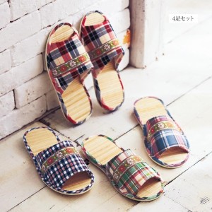 チロリアンテープ使いの竹スリッパ4足セット