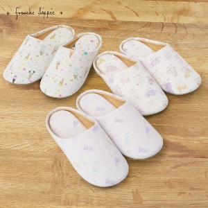 フランシュリッペならではの可愛いらしいプリントがフェミニンなスリッパ。やわらかい肌触りで足にぴったりフィットします。