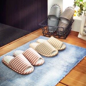 汗ばむ季節もベタつかず、さらっと快適なはき心地のい草素材を中敷に使用。すっきり爽やかなストライプ柄が足元をおしゃれに演出する、2足セットのスリッパです。