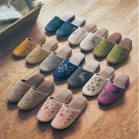 広めの甲に惜しげもなく刺繍を施した贅沢なスリッパは、お客様の評判もすこぶるいい。家事をする時だってうきうきした気分になれるから不思議。