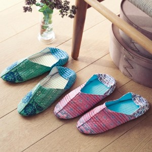30%OFF2019年2月~12月の販売価格\1,565(税抜) 鮮やかカラーと柄、手縫い風ステッチが目を引くルームシューズ。