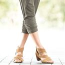アウトソールの形状を不安定にし、スタイルをつくる筋肉に刺激が集中するよう設計された室内用サンダル。(お悩み-美脚)