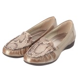 インソールに工夫をほどこし、履いて歩くことで美しく正しい姿勢へと導いてくれるモカシンタイプのシューズです。