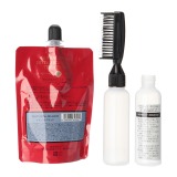 髪にツヤを与えながら、気になる白髪を染めていく洗い流しタイプの全体染め用「ボタニカルカラートリートメント(トリートメント染毛料)」と、「クシ付詰替え容器」、「クシ部洗浄用ボトル」のセットです。