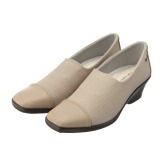 ゴアテックスの防水シートをアッパー素材の間に挟み込んだウェッジヒールパンプスです。つま先部分を異素材で切り替え、3Eのワイズながらも足をシャープに見せてくれる、スマートでクールなデザインです。
