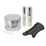 なめらかな使い心地でお肌に潤いとハリを与える「トリートメントクリーム」、「ファーストミルク V1(ミルク美容液)」30mlサイズ、「エッセンス V1(ミスト状美容液)」20mlサイズ、「かっさローラー…
