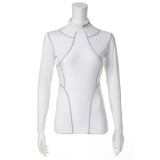 生地の伸び方向を変えて組み合わせた設計で体幹部を支える、オールシーズン着用可能なスポーツインナーです。