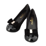 つま先部分にエナメル調素材のバレエリボンをあしらった、キュートなデザインのシューズです。ふかふかのインソールや、程良い高さで歩きやすいヒール、かわいらしいデザインなど、床嶋さんのこだわりが詰まった機能…