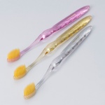 金と銀を配合したオーラルブラシです。段差(高低差)をつけた植毛仕様。毛先の太さは0.03mmと極細毛で柔らかめです。