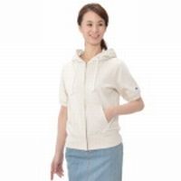 柔らかい肌触りの素材で仕立てた、半袖のパーカーをご紹介します。紫外線を遮断する生地を使用。両脇にポケットが付いているので、小物を入れるのに便利です。