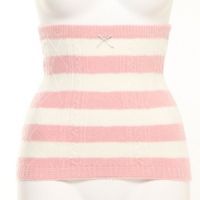 ふんわり柔らかな素材を使用した、ぬくもり感たっぷりの腹巻き。ボーダー柄をベースに、ケーブル柄でさり気なく表情を付けました。