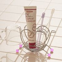 歯ブラシ6本と歯磨きチューブをキュートにスタンバイ。両サイドにはコップが掛けられます。サビに強い18-8ステンレススチール製。