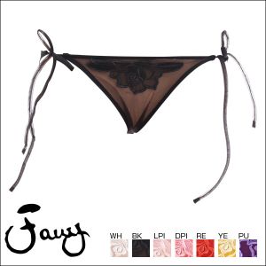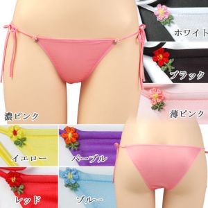 透け感がセクシーなショーツです★サイドはほどけるリボンタイプでドキドキ感UP♪フロントにほどこしたバラの刺繍が艶やかです。