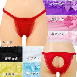 透け感がセクシーなTバックショーツです。オープンクロッチタイプで大胆に♪フロントにリボンをつけて、サイドが細い華奢なデザインでセクシーです。