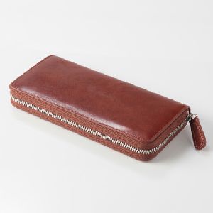 牛革の風合いにロゴプレートがおしゃれなラウンド長財布。カードは8枚収納可能で、札入れは6箇所あり領収書などもたっぷり収納できます。