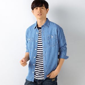 ウオッシュ加工ダンガリー長袖シャツ 大きいサイズメンズ