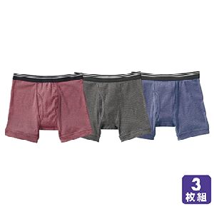 お客様からとても人気のボクサータイプ。生地もしっかりしていて、快適なはき心地良さです。財布にやさしい、お買得プライス3枚組。