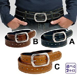 外周を覆うカラーステッチと、パンチングデザインがオシャレ。約3.9cmのベルト幅は丈夫で、ジーンズとの相性もバッチリです。
