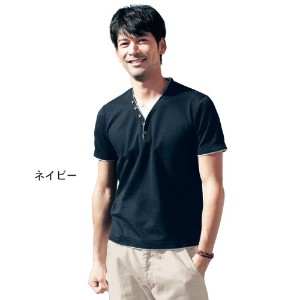 メンズ 杢ボーダーVヘンリーレイヤードTシャツ