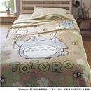 トトロの笑顔で癒されそう。トトロ柄の表側はなめらかなフランネル生地、裏側はふわふわのシープ調生地を使用したあたたかな毛布です。