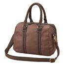 ブラウン系の微配色&異素材使いが、こなれムード漂うボストンバッグ。キュートなコンパクトサイズながら、マチ幅広めの程良い収納力が絶妙バランス。