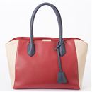 上品な配色使いがコーデを格上げする主役級バッグ。ボルドーとネイビーにベージュを合わせた大人な色使い。