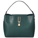 バックルを効かせたクラシカルなバッグ。ゴールドのバックルがポイントのショルダーバッグ。高級感を醸し出す深みのグリーンはコーデをワンランク上に導いてくれる。