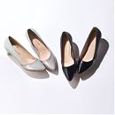 トゥはエナメル調素材、メイン部分はシボ感のある合皮で切り替えたこだわりの一足。ポインテッドトゥのシンプルデザインは幅広いコーデに活躍!