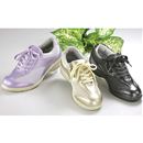 スニーカーのような履き心地で足元が華やかに春めく。メタリックカラーのつま先が女性らしい。やわらかな風合いもグッド。