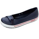 マリンテイストの配色に革ひものリボンがアクセント☆サイドのカッティングで通気性がよく、素足に履いてもムレにくく、軽くて履き心地ラクラク♪