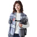 まるでボーダー柄のカーディガンを着ているようなデザインのストール。袖口と裾は2枚仕立てになっており、まるで本物のカーデ風に♪