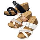 クロスベルトがすっきりと足元を演出し、クッション機能で長時間の歩行もらくらく。中敷に抗菌防臭加工。(お悩み-楽ちん)