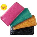 おしゃれな花柄の型押し♪使いやすいL字デザインで薄いから小さなバッグにラクラク入る!
