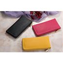 各種カードやお札に小銭、パスポートまで収納できるゆとりのサイズ。L字型ファスナーなので大きく開いて出し入れ簡単です。