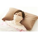 鼻からデコルテまですっぽり覆うから徹底して焼きたくない人におすすめ。うしろホックで着脱簡単。涼感素材でベタつきにくく、ノーズパッドで顔への密着を防ぎメイク崩れも抑えられます。