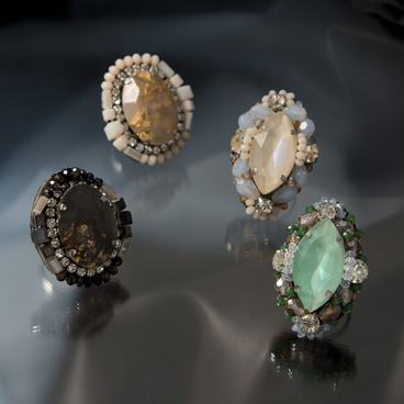 艶をおさえたアンティークゴールドがシックな表情。複雑に編み込んだビーズの存在感がデコルテに華やぎをもたらします。